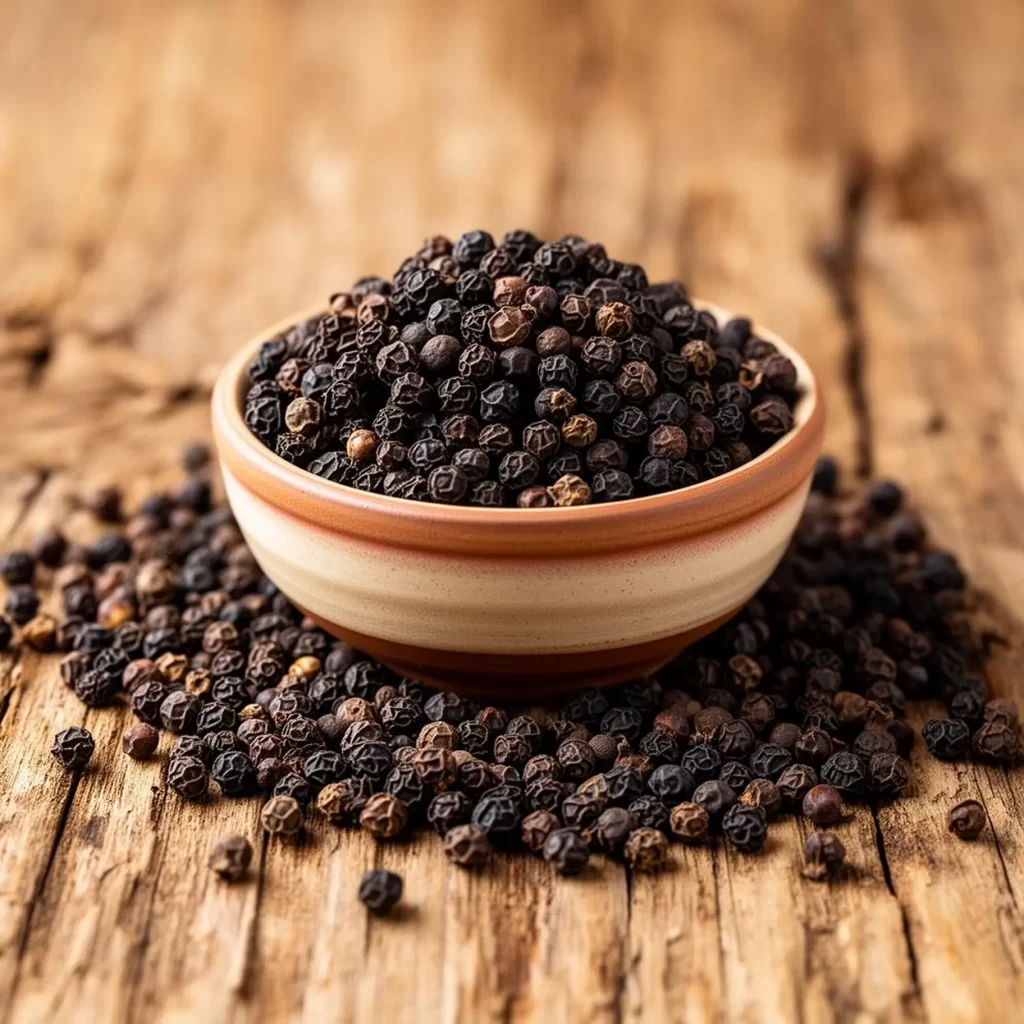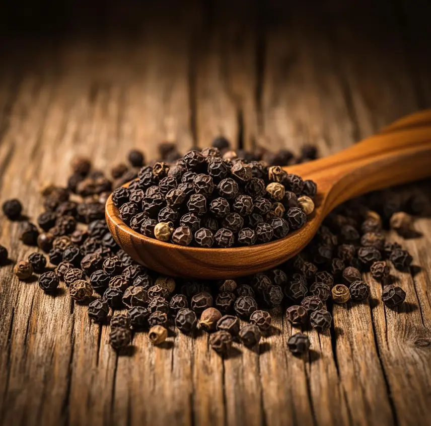 Pimenta-do-reino de alta qualidade, beneficiada com processos que garantem pureza, aroma e certificações para exportação.